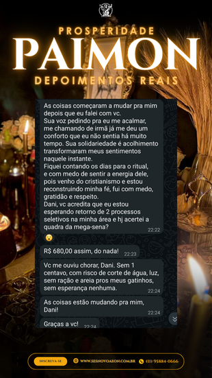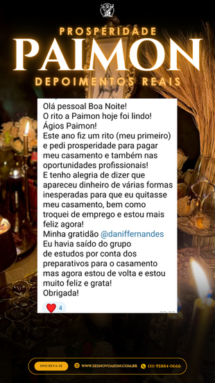 Ritual Coletivo de Paimon, o grande Rei da Sabedoria, dos tesouros ocultos, talentos e prosperidade. Voltado para a abertura de caminhos financeiros, prosperidade, magnetismo e expansão.