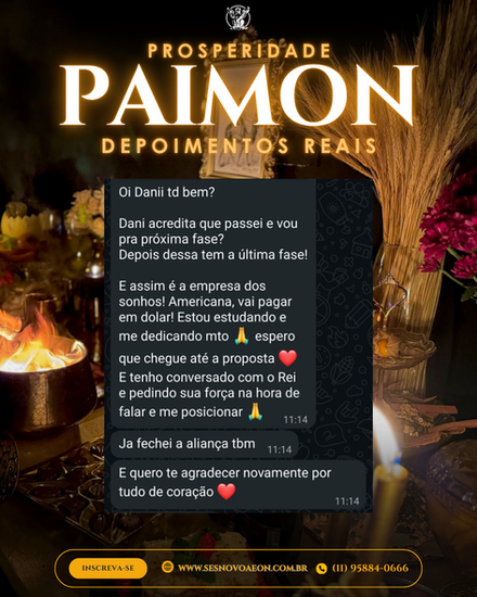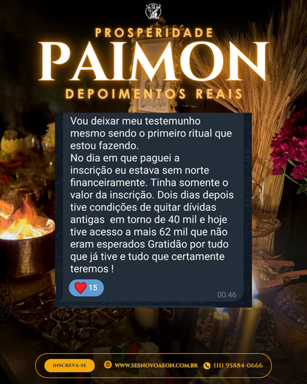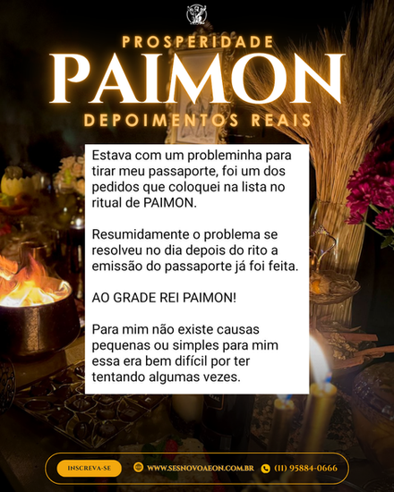 Ritual Coletivo de Paimon, o grande Rei da Sabedoria, dos tesouros ocultos, talentos e prosperidade. Voltado para a abertura de caminhos financeiros, prosperidade, magnetismo e expansão.